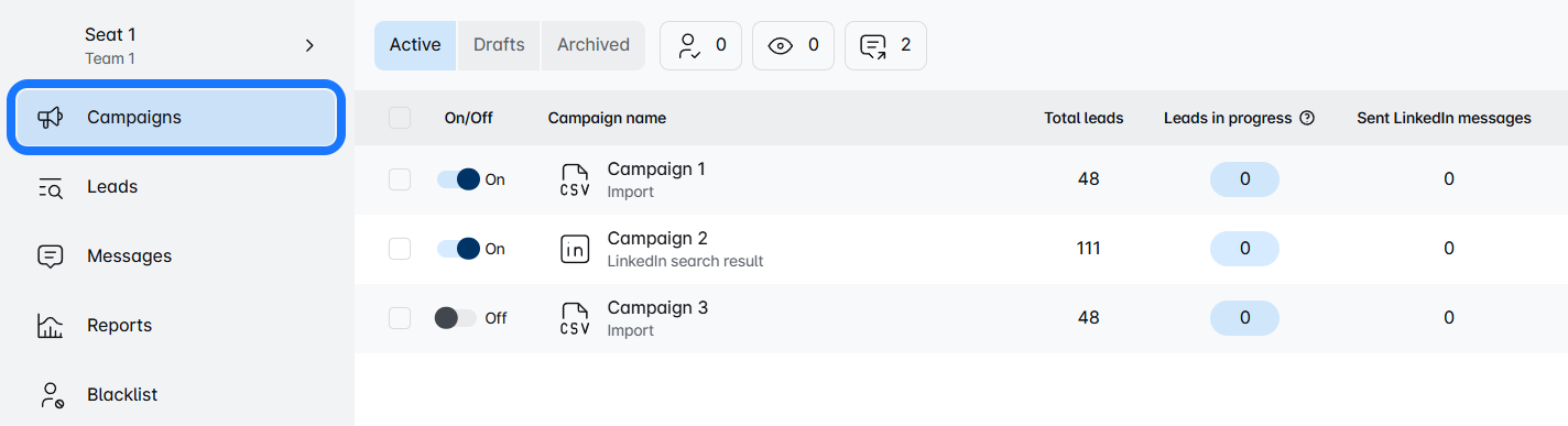 Start by logging into your SALT Marketing Linkedin Automation account and heading over to the Campaign Dashboard.