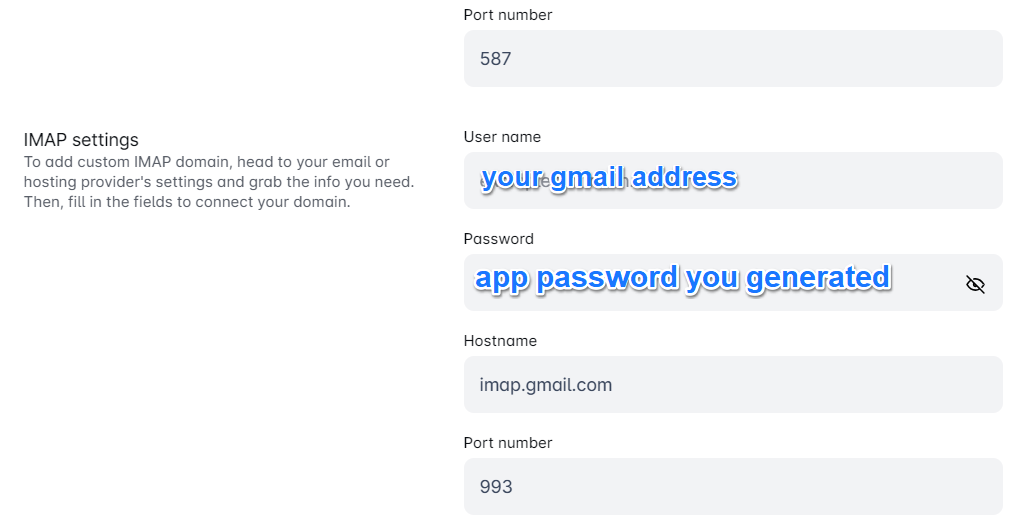 The SMTP and IMAP details should be pre-filled in the form for you. Easy-peasy! ๐